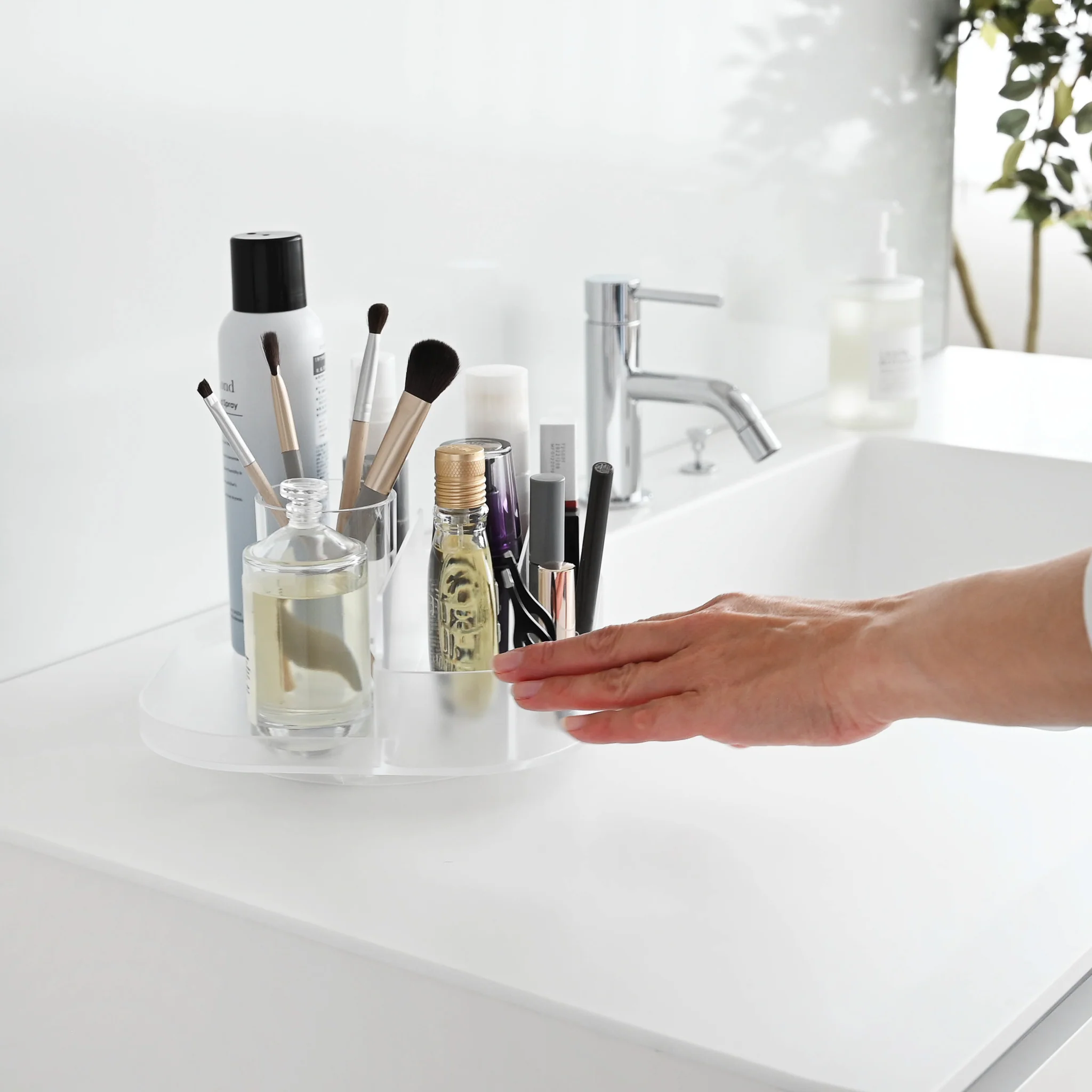 This space-efficient storage tray with compartments optimizes fridge or cabinet space by making items at the back easier to reach. Its rotating function provides access from all sides, keeping essentials organized and handy.