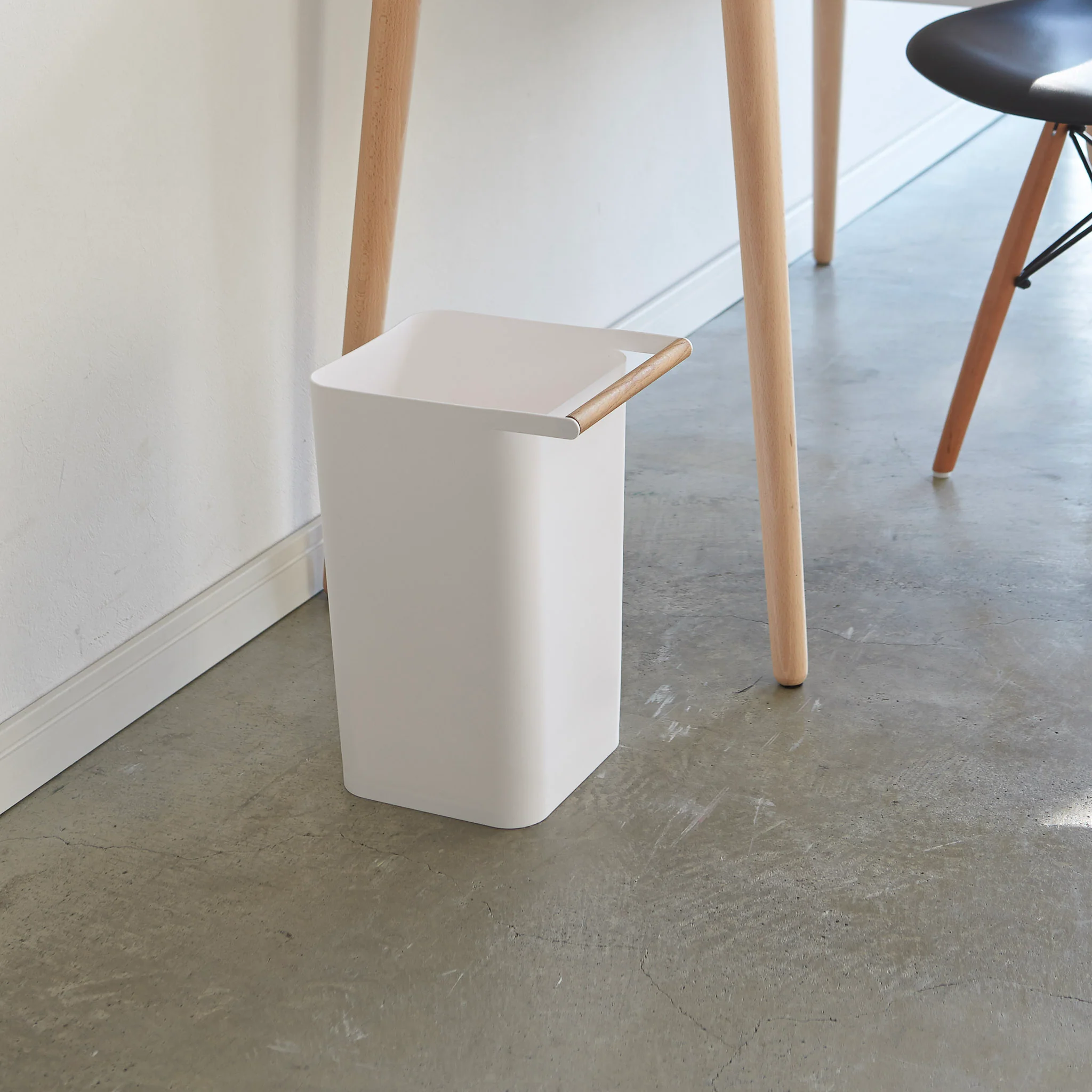 This trash can has a simple design that fits perfectly into any space, whether in the office or living area. Its lightweight build makes it easy to use, and the wooden handle ensures easy portability and adds a warm touch.