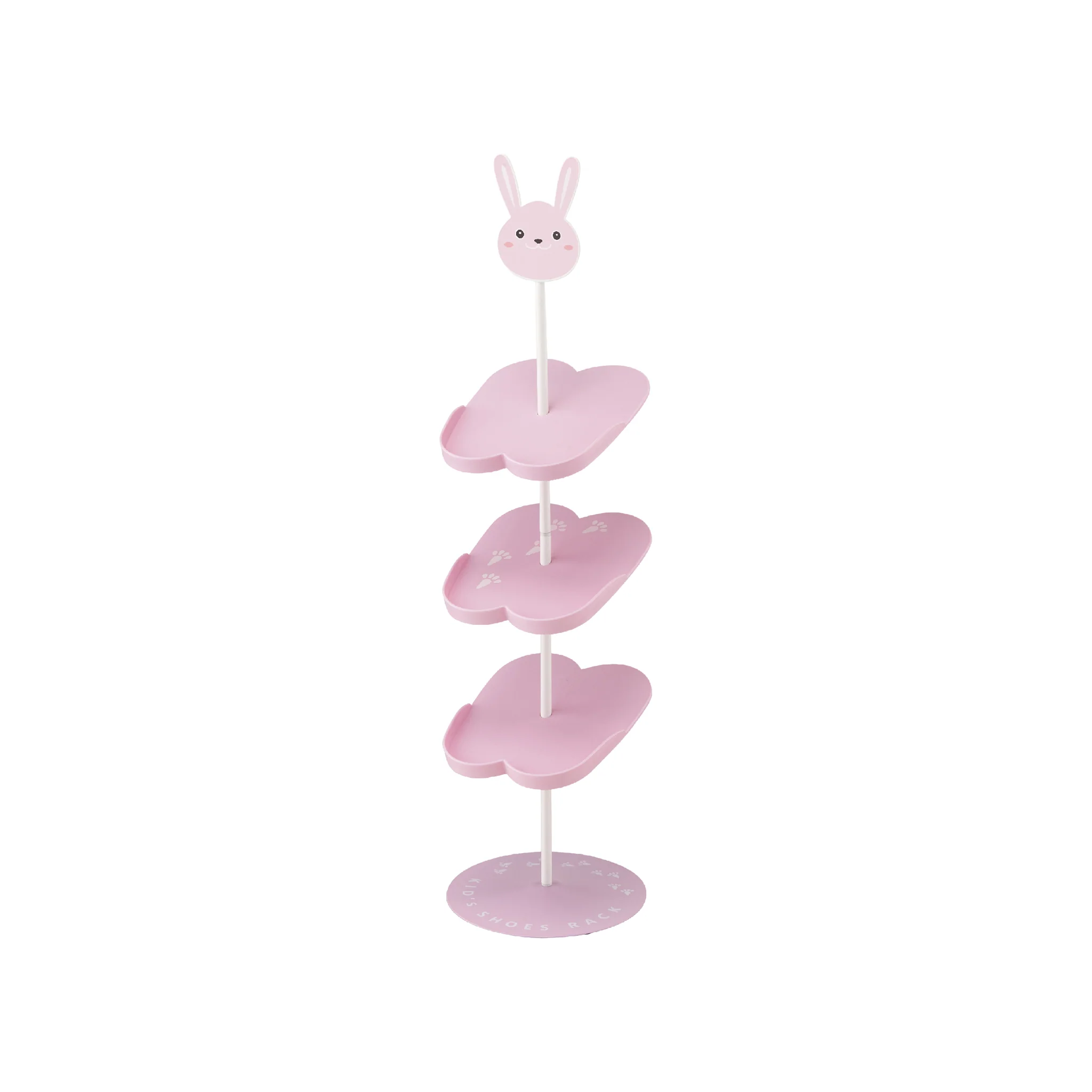 This shoe rack is perfect for organizing kids' shoes and has a charming pink bunny design. It features three adjustable tiers, with additional space at the bottom for taller footwear such as boots.