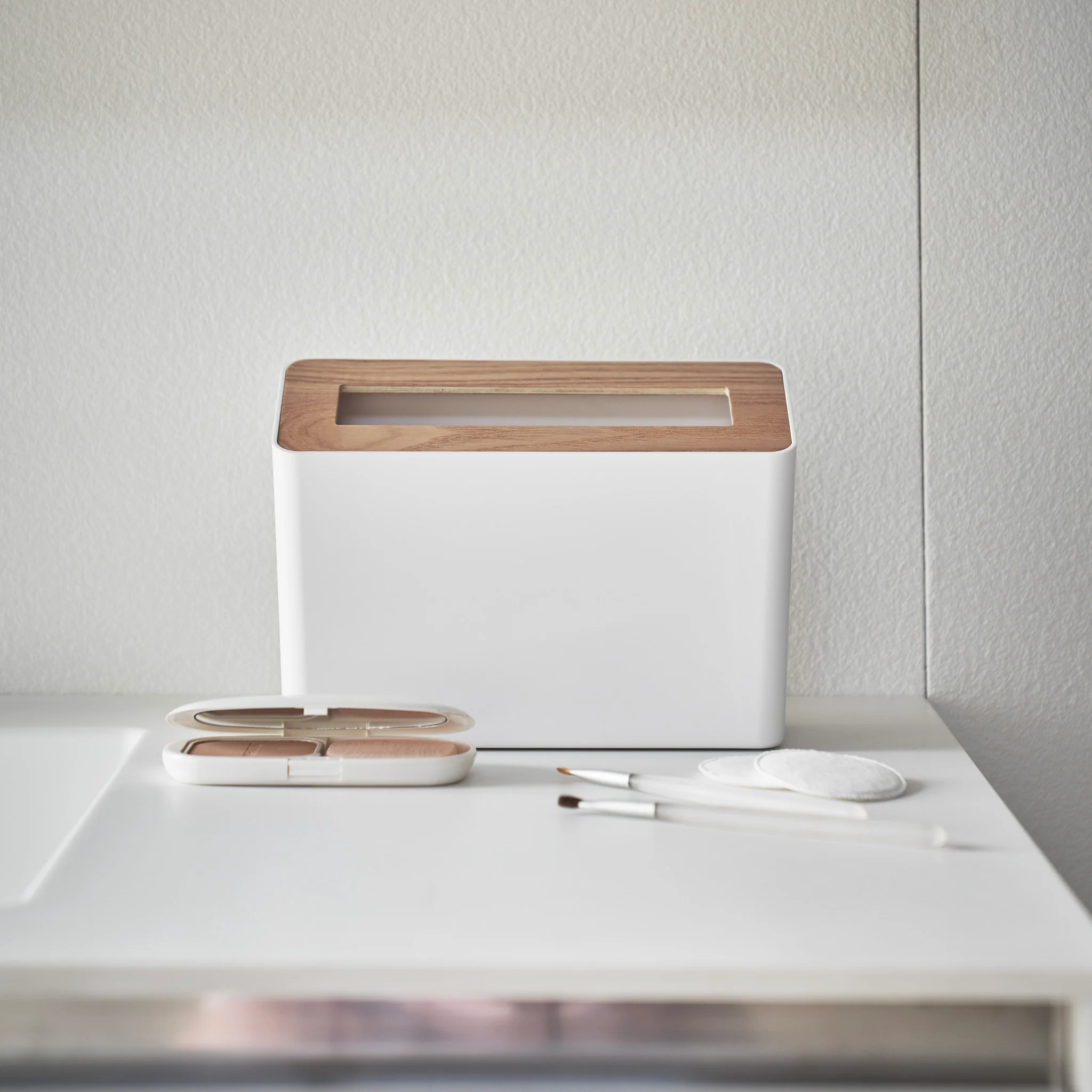 This trash can features a sleek, compact design, making it ideal for use on tables or countertops. It has an easy-to-clean body and an elegant, removable wooden lid that ensures quick and effortless waste disposal.