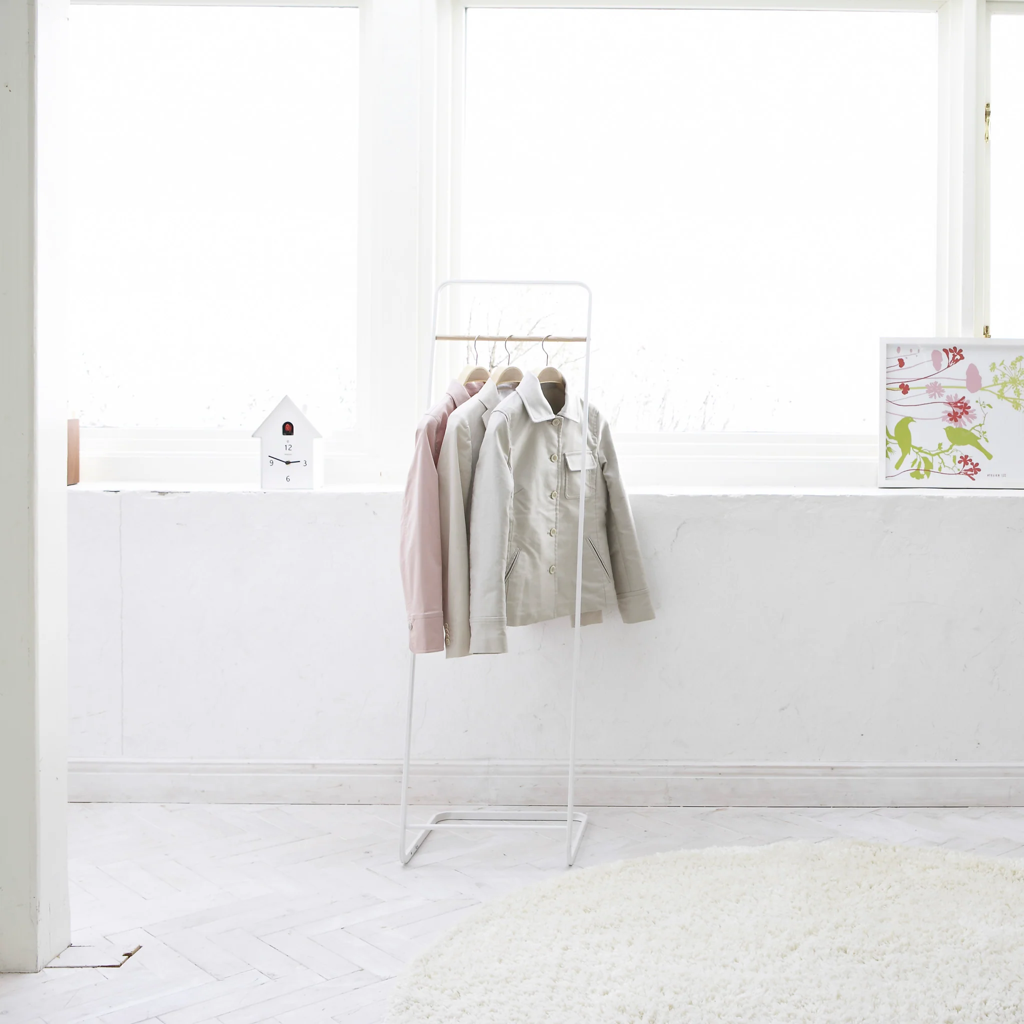 This coat stand offers generous storage for jackets, coats, and other clothing. Its slim design seamlessly fits into any room, making it perfect as a coat hanger in the entryway or a versatile clothes rail in the bedroom.