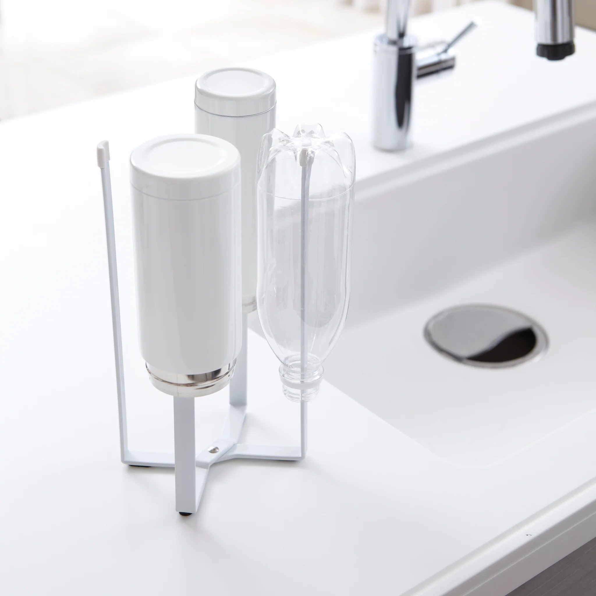 This stand is a practical addition to any kitchen, designed to handle multiple tasks. It works as a tabletop waste bin or a drying rack for glasses and bottles, and when not in use, it folds for convenient, space-saving storage.