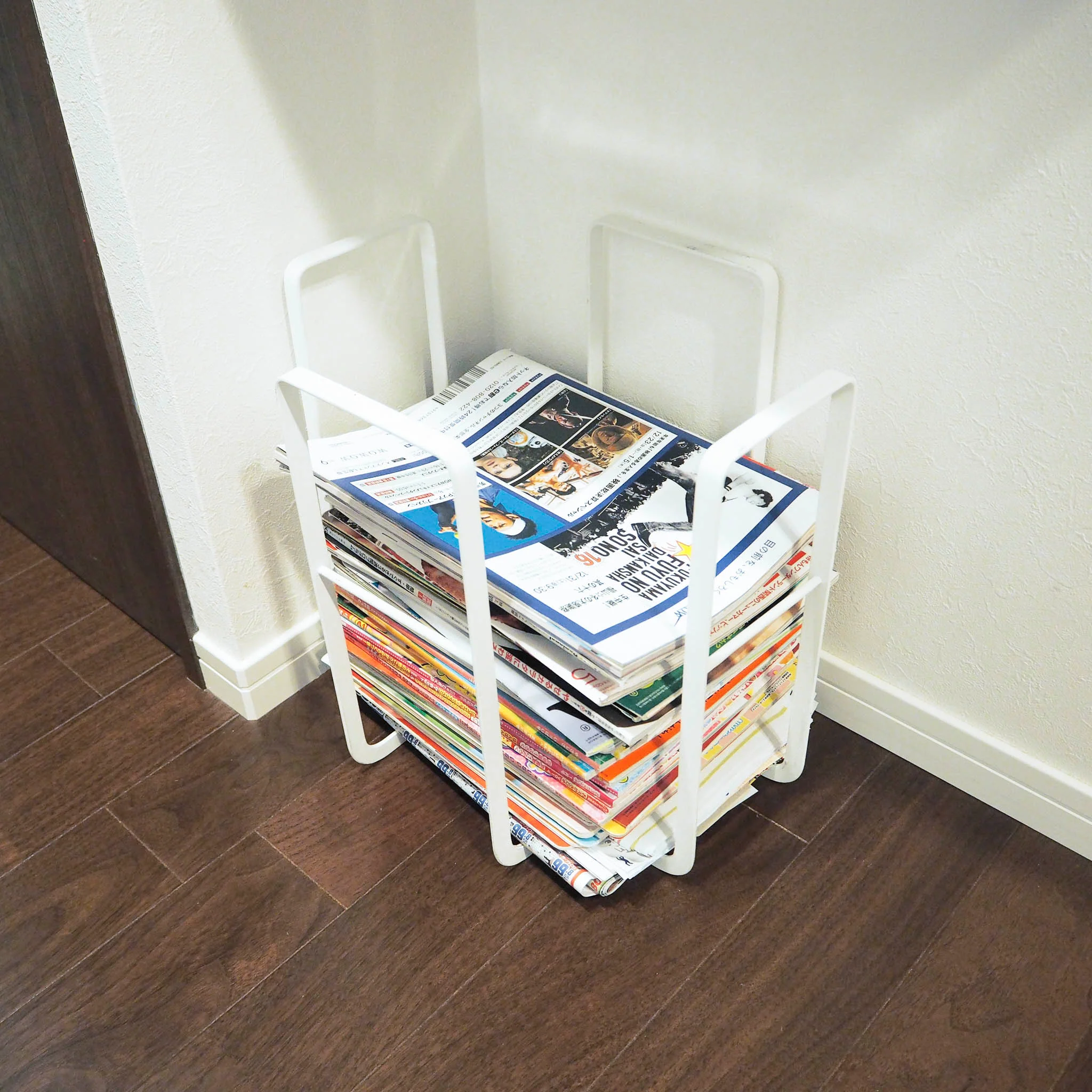 This rack offers a space-efficient solution for organizing large stacks of newspapers, magazines, or documents in one place. Its minimalist, open design also makes it easy to bind and dispose of old newspapers with ease.