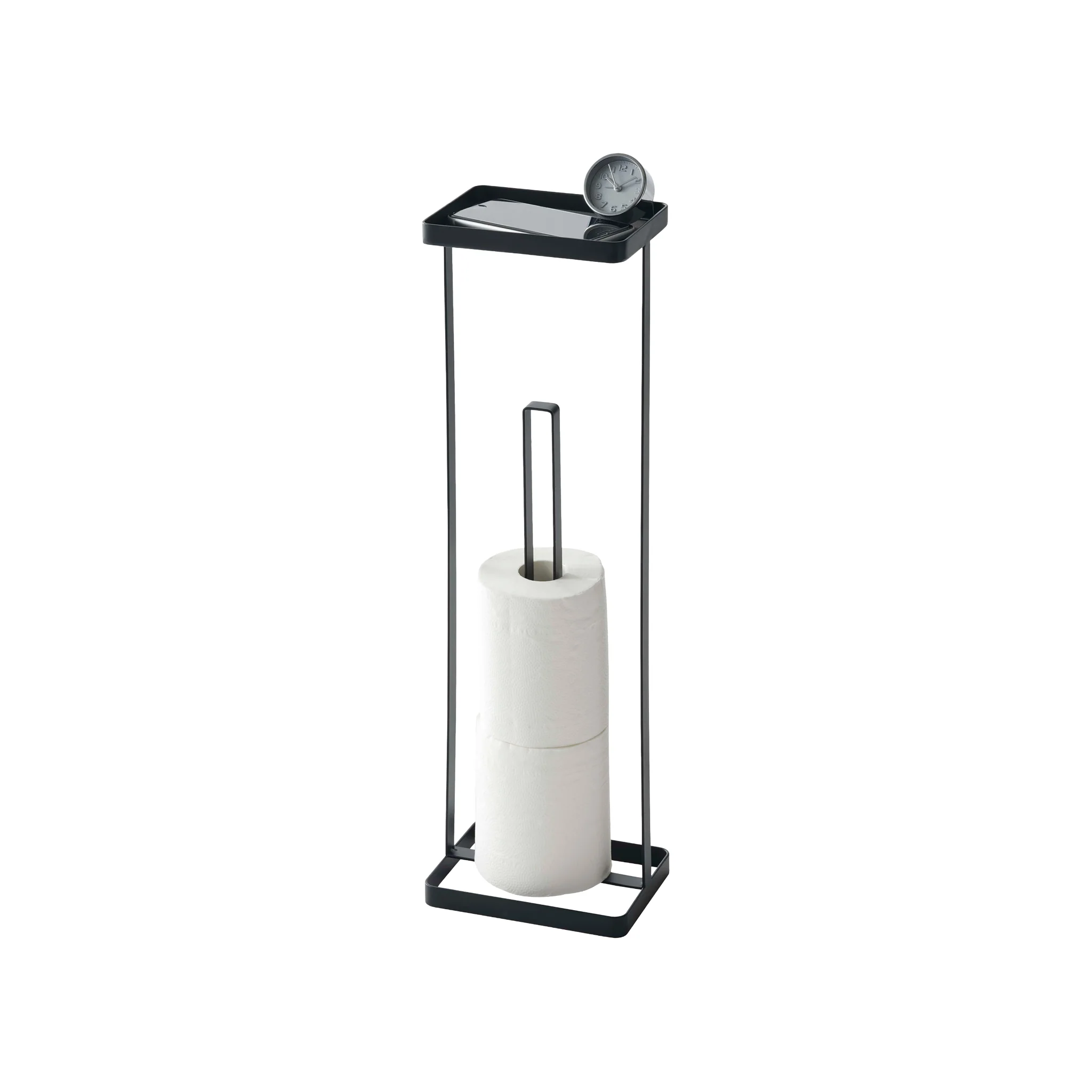This toilet paper stocker features an open design with a central rod that holds up to three rolls of toilet paper. The top tray provides a practical space for decorative items, essentials, or even temporarily placing a smartphone.