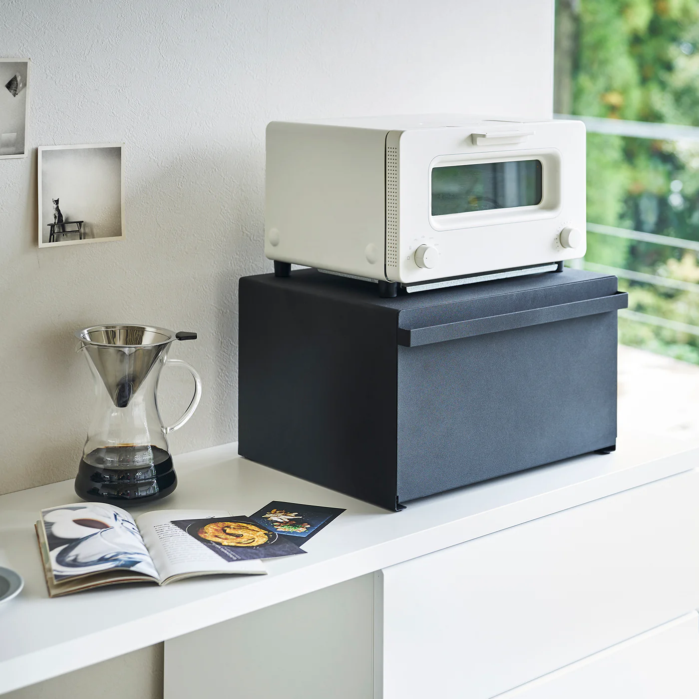 This bread box, made of durable steel, is a stylish and practical addition to any kitchen countertop. It offers ample storage for various ingredients and essentials, featuring a convenient handle and a secure magnetic lid.