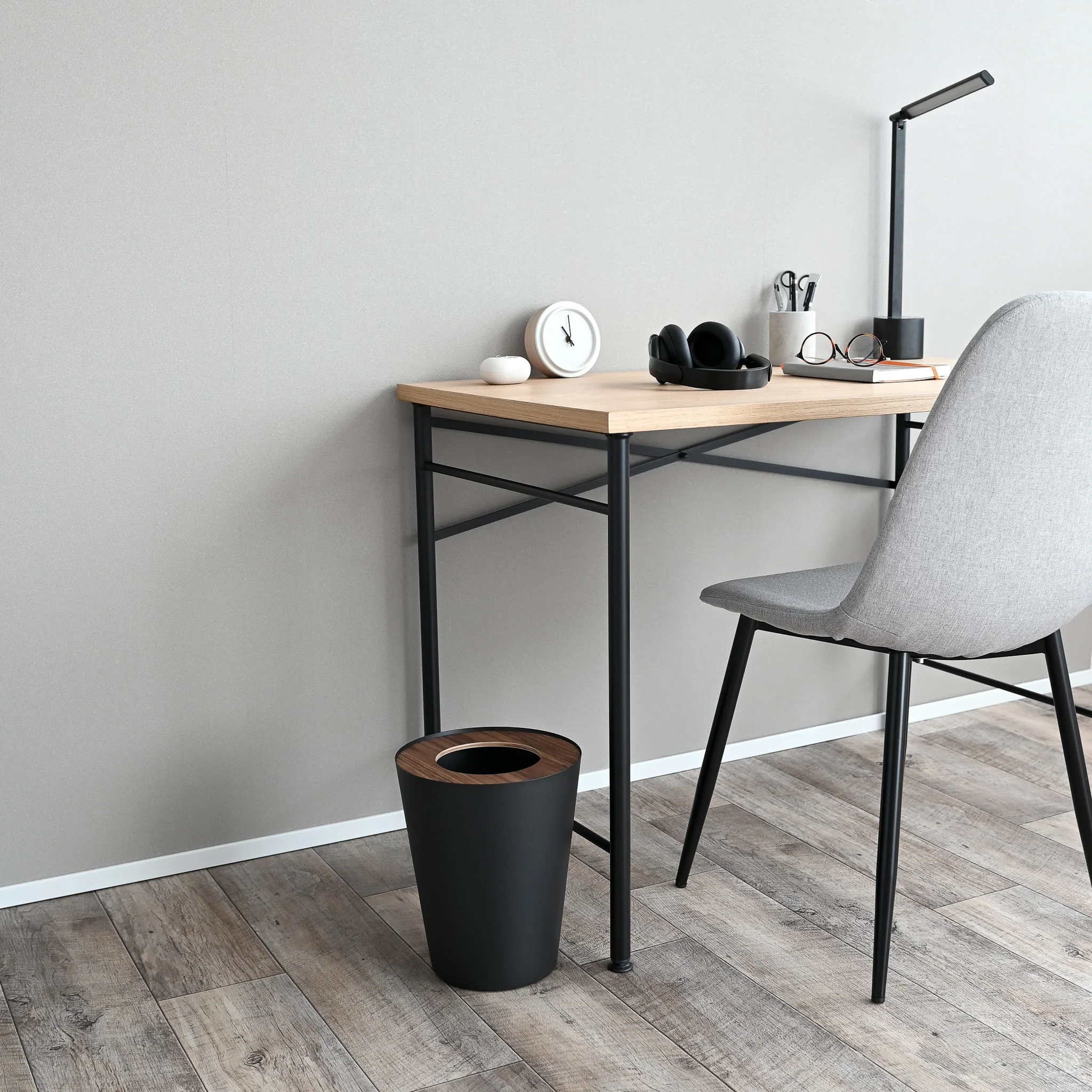 This trash can combines functionality and style, making it perfect for offices or living spaces. Its wooden lid discreetly hides contents, while an internal metal ring secures the bin bags, ensuring a clean and modern appearance.